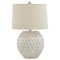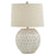 Cream Hue and Natural Linen Shade Lamp with Elegant Lattice Base Design